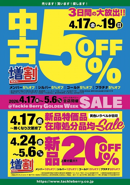 手放そうか迷っている釣具は是非25日に当店までお持ち込みください!