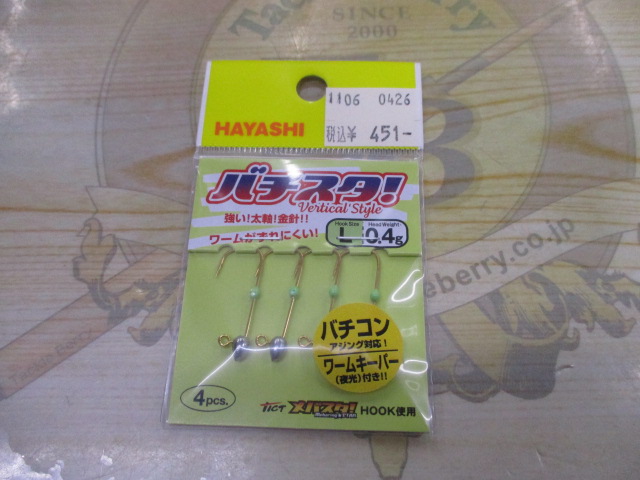 針は結構小さめのオフセットなので2インチぐらいのシャッドテールやホッグ系ワームがおススメ!ファイヤーフライミニとかもいいと思いますよ!