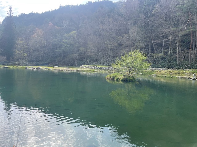 鱒蔵さんは山に囲まれているのでよっぽどの風でなければ遮ることができ快適に釣りすることができますよ!(^^)/