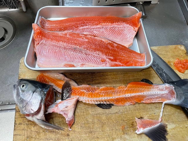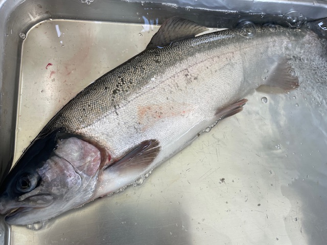 内臓や鱗は鱒蔵さんの捌き場で処理してきたのですが、せっかくの大型は刺身にしたいので三枚おろしまでチャチャッとやっちゃいます