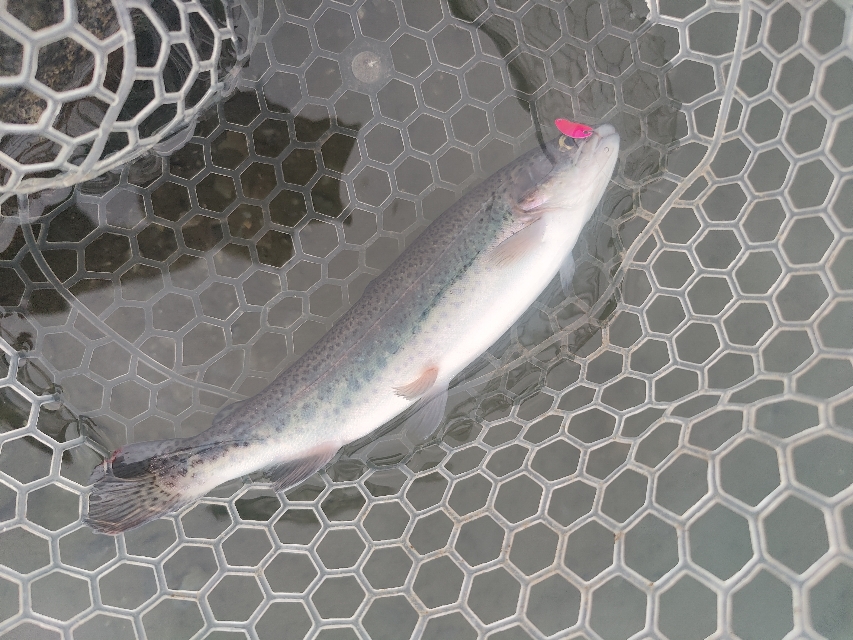 ハイバースト1.6gやバンナ1.4g等、カラーはピンクやシルバー、明滅などで釣果を得られました。