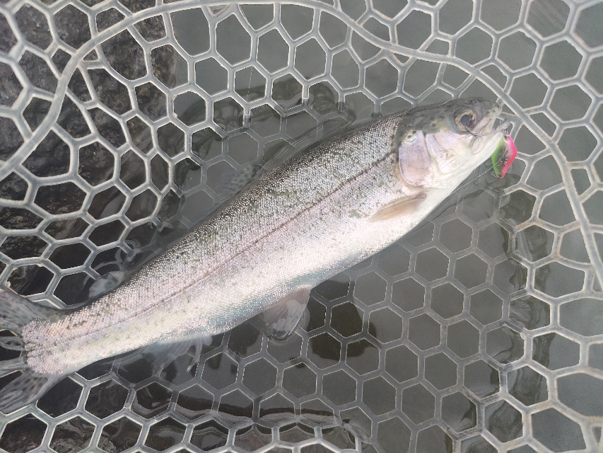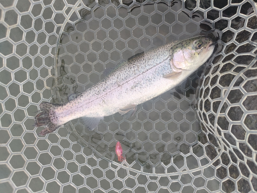アレ?と思いスプーンに変更してみると一投目で安心の1匹。