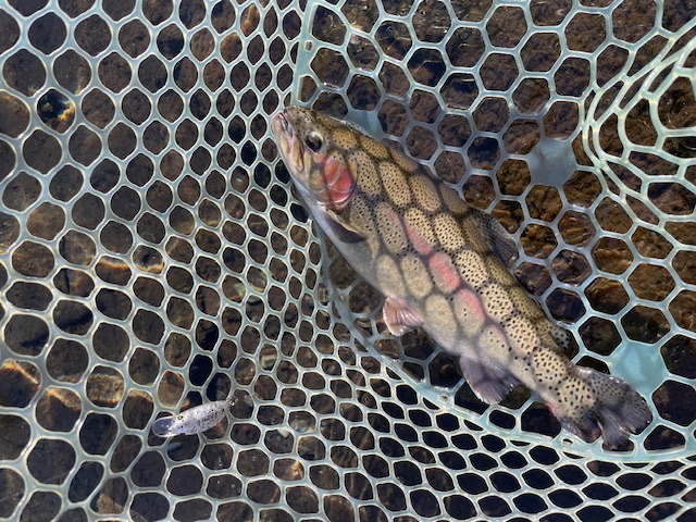 渓流魚に出会えるとはなんともうれしい出会いでしたが、小さいのでリリース!