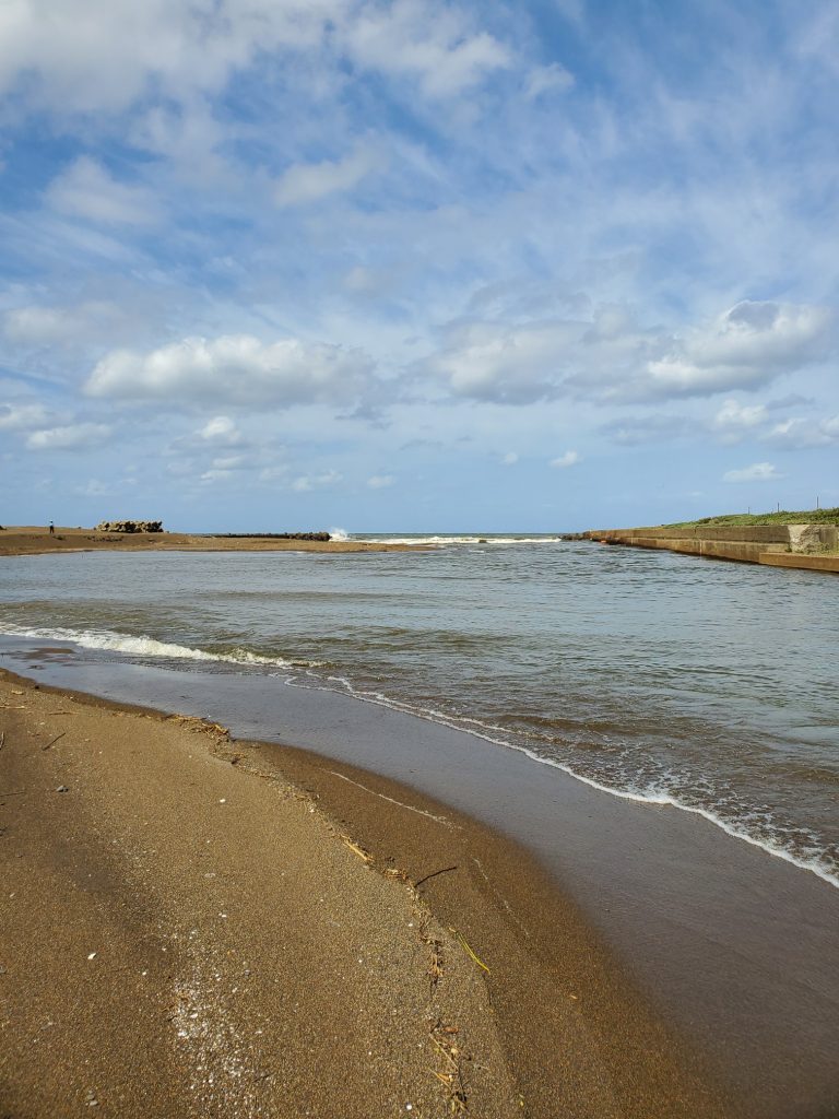 数か所ポイントを巡り、比較的風が穏やかな河口を見付けチョイ投げをしてみると