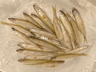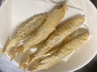 釣ったワカサギは塩焼きと天ぷらでいただきました