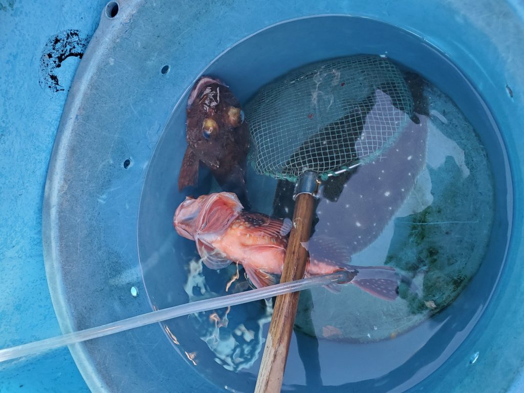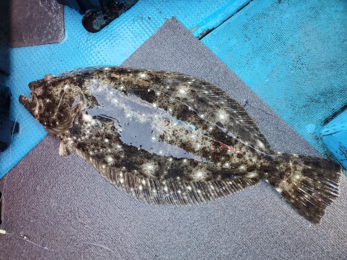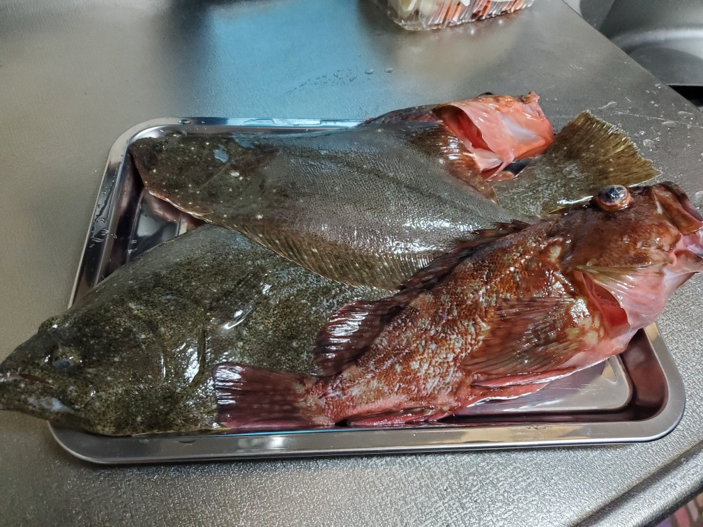 その後は潮も流れなくなり、一回り小型のヒラメ1枚とウッカリカサゴが2匹釣れたのみで納竿となりました。