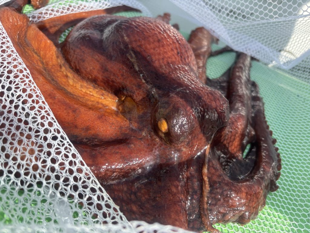 重いだけで中々巻く事も出来ず根掛りだと思っていると船長から「それタコだからしっかりドラグ締めてないと駄目だよ!」と言われ、慌ててドラグを締めていると・・・