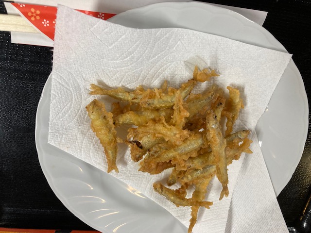 釣ったワカサギは青木旅館で天ぷら(唐揚げ?)にしていただきました