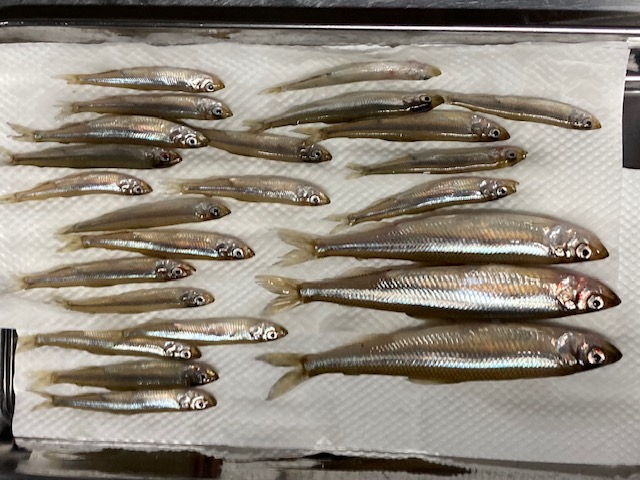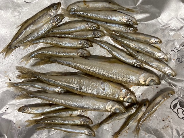 ↑釣れたワカサギは塩焼きに↑