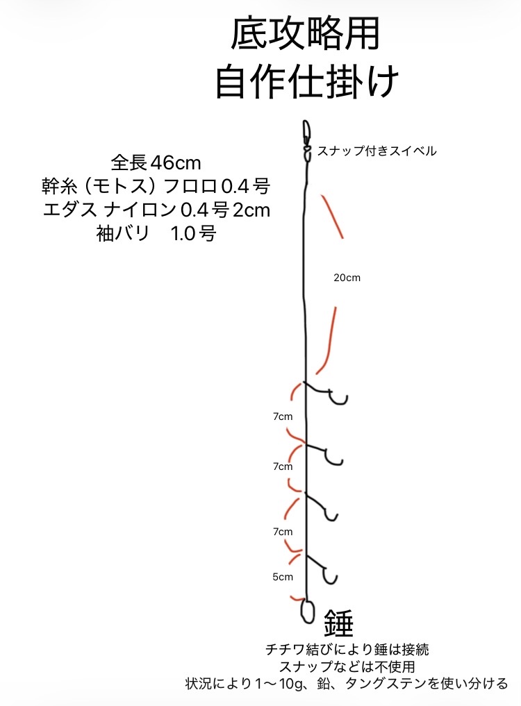 基本的に重い錘から使い、アタリがなければ少しづつ軽くしていきます