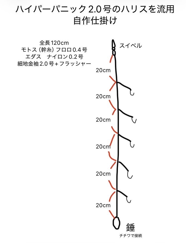 ハイパーパニックは金バリ+フラッシャーというアピール力は抜群の構成!簡単に言うとサビキです