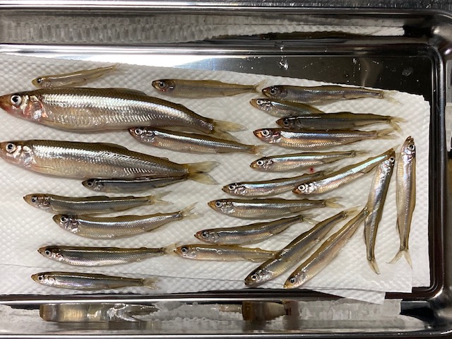 釣れてくれたワカサギとウグイに感謝!