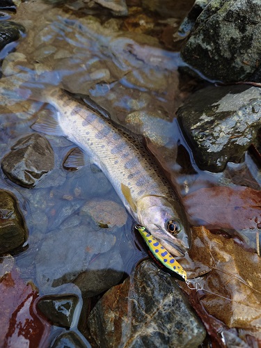 川の規模は大したことないので水深のあるとこだけ狙い撃ちしていきます。
