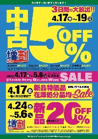 新規オープンセール限定開催してきた、中古商品割引セールをゴールデンウィークセールで3日間限定開催します!