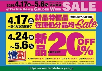 只今、タックルベリーではセールを開催中!