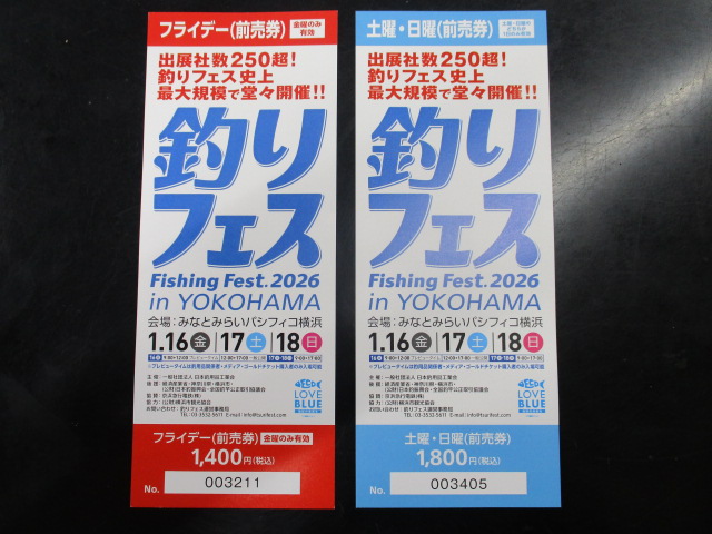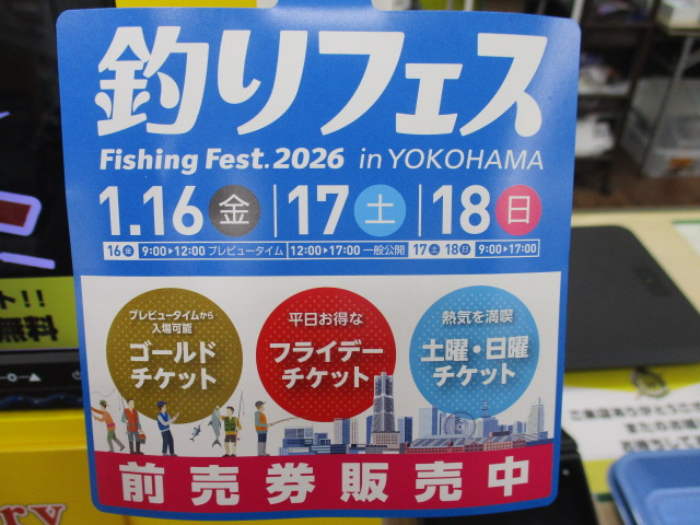本日は新たに入荷した新品商品と、横浜にて開催予定の釣りフェス2026前売り券のご紹介です♪