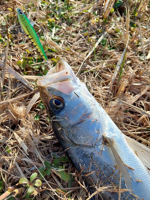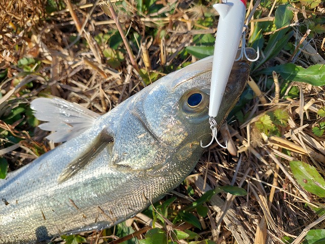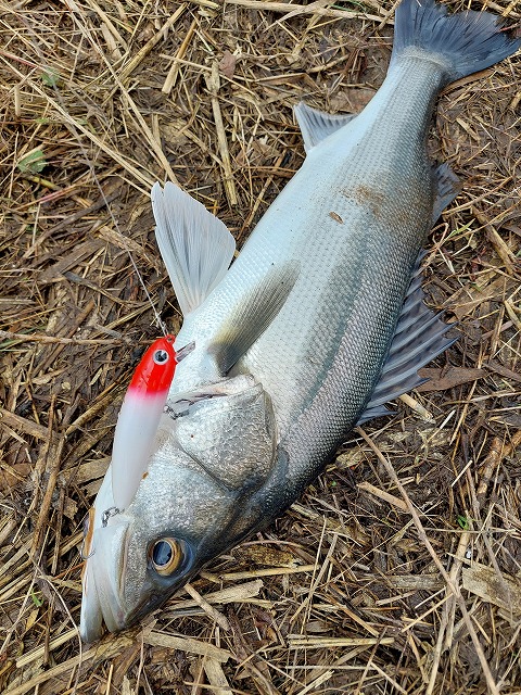 40センチ位のシーバスキャッチ。その後ローリングベイトの色を変えてまた同じパターンでヒット。