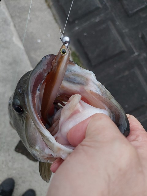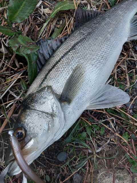 安定のシーバスゲット。その後水門付近を攻めているとバイト。