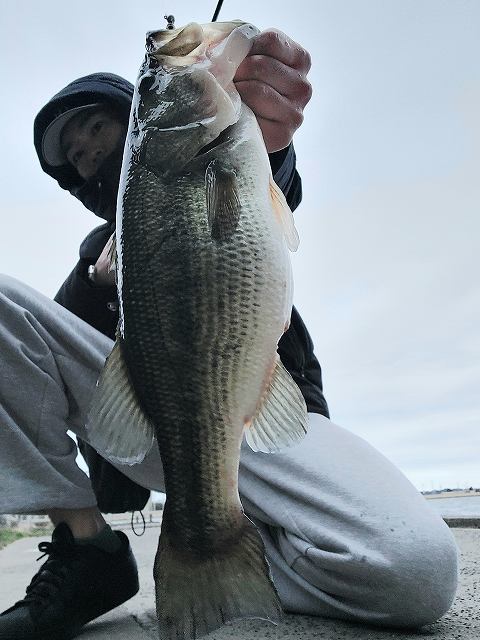 寒かったですが鳥達がいてシラウオがいて水も良さそうで良い感じ。アシ際を狙いましたが無で垂直護岸系の部分に差し掛かると何かがボイル。投げるとヒット。