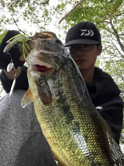 まずは朝マズメ、使うのはフロッグと言いたい所だが残念ながらまだカエルも泳いでいなければカバーがある分けでもない。ここは迷わずスピナーベイト!!
