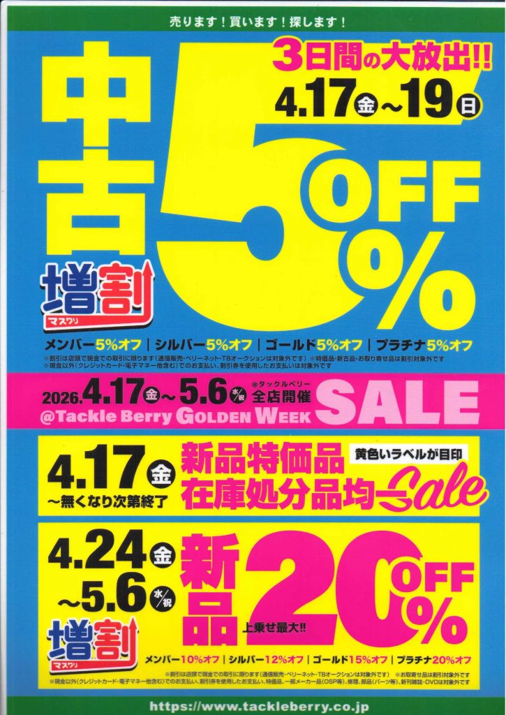 ゴールデンウィークセールのご案内です。やばいですよーみなさん! ↓↓↓これです🔥