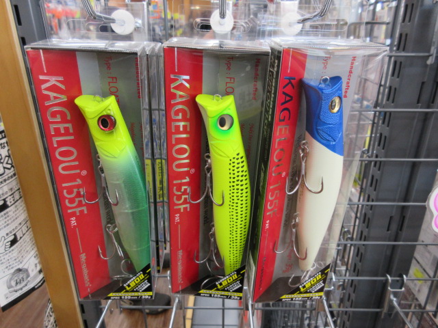 秋冬の大型ベイトパターン攻略に欠かせないカゲロウ155Fと人気の小型バイブレーション!ナレージ50、バス釣り定番ワームのカバースキャット3.5inが入荷しました。