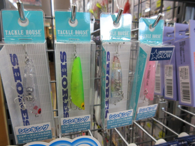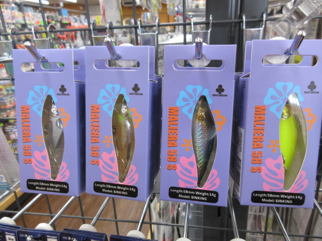 友人を無くすルアーことマリエラ58Sと待望のシンキングモデルが追加されたショアーズリップル52Sが入荷いたしました。