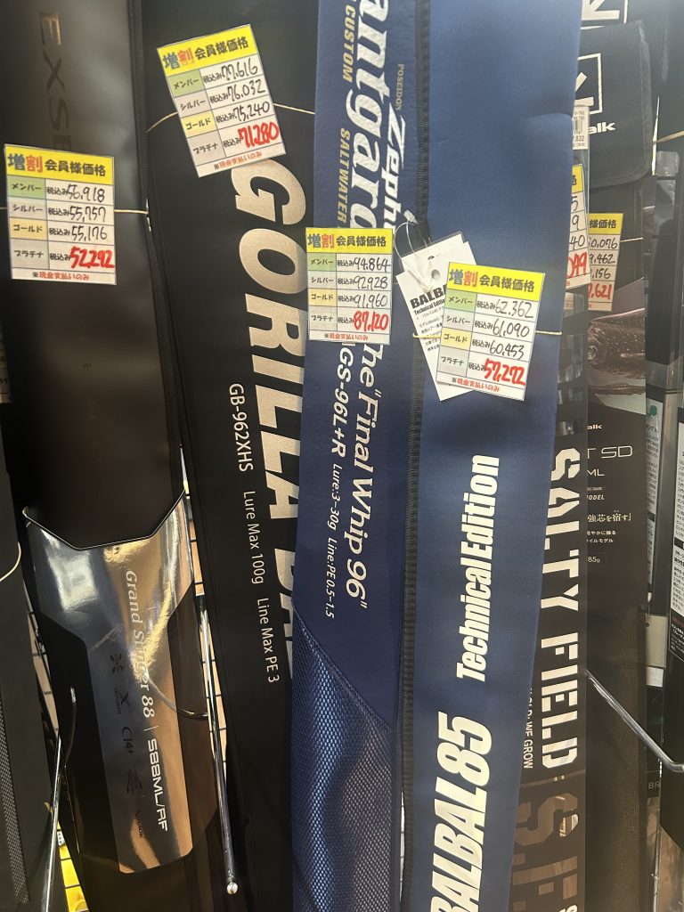 バルバル85、フウジンシリーズなどなどハイエンドシーバスロッドも会員様だとお安くお買い求めいただけます🔥