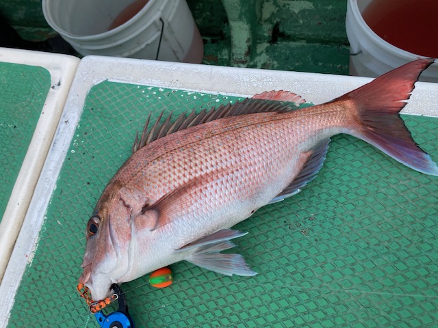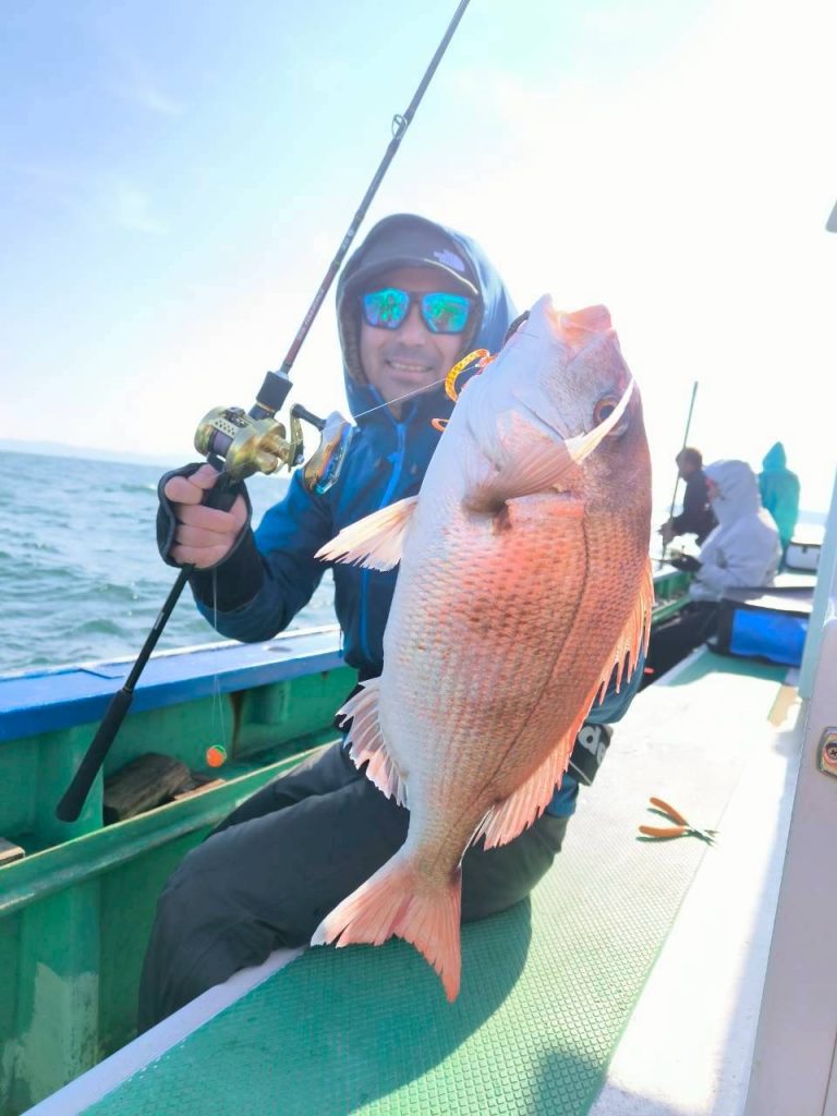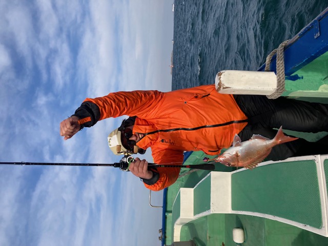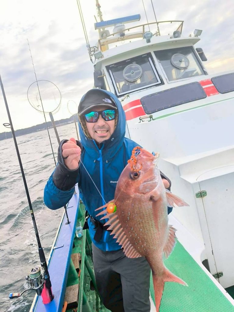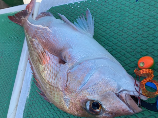 この日は渋く、開始から3時間は船中マダイが上がらず我々に関しては全員ノーバイトの状況でしたが、後半からアタリアリ★