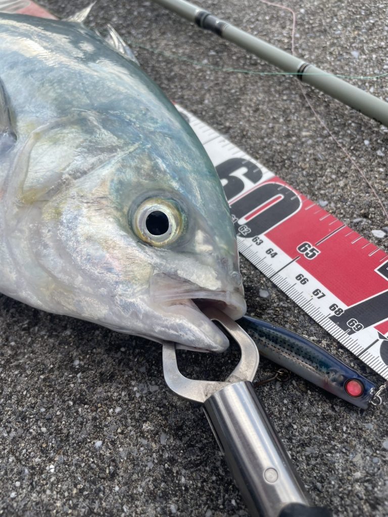 手前に大量のベイトが溜まってるのが見え、これはワンチャンあるかも!と思いルアーを投げてみると着水した所もベイトが溜まっていたらしく跳ね回る魚!
