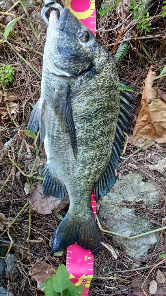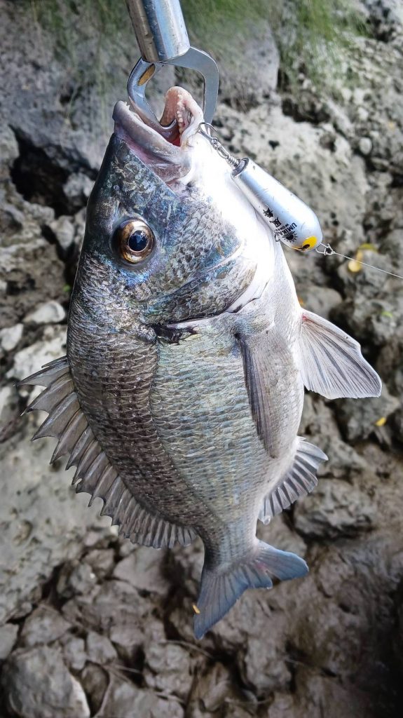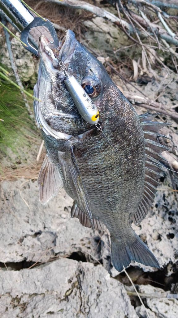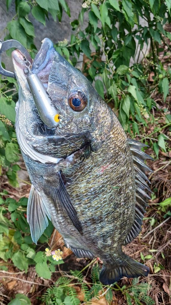 上げ潮途中でストラクチャーに居ついているチヌを探して