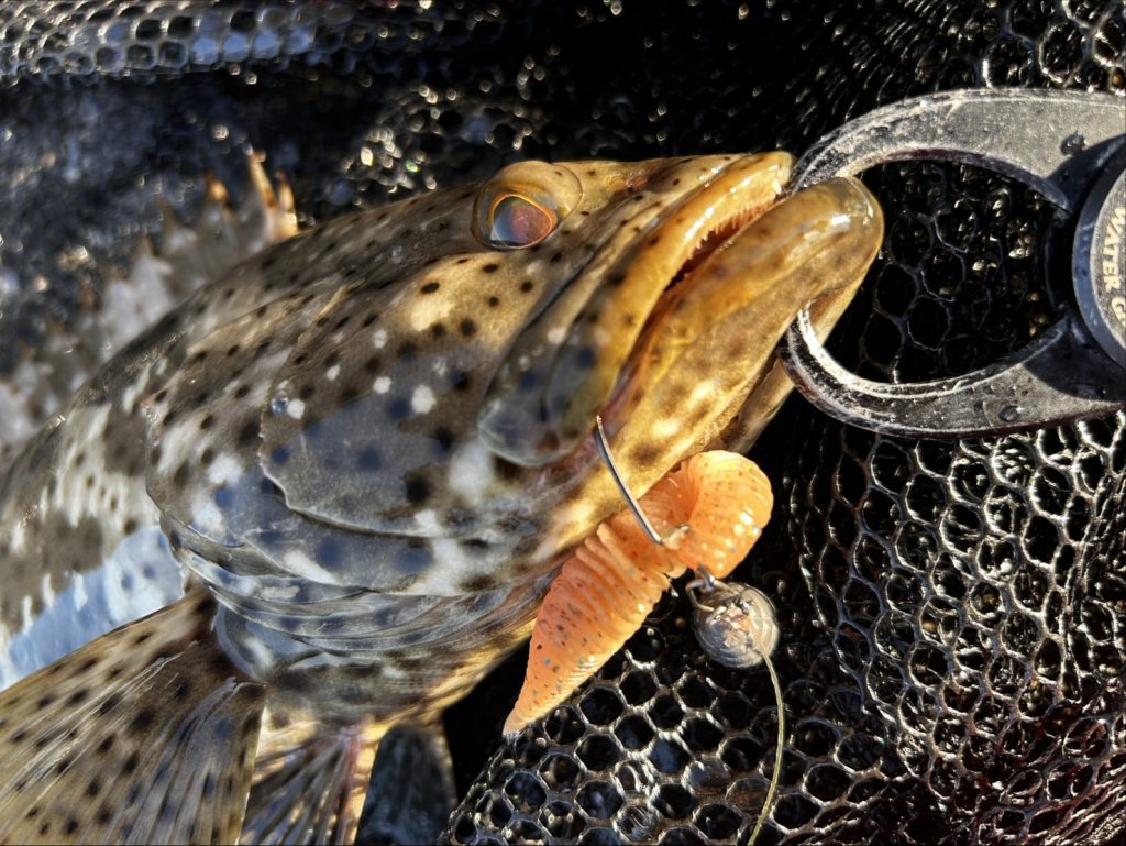 ゆっくり上がってきたのはサイズの割りに太ったヤイトハタでした!!!