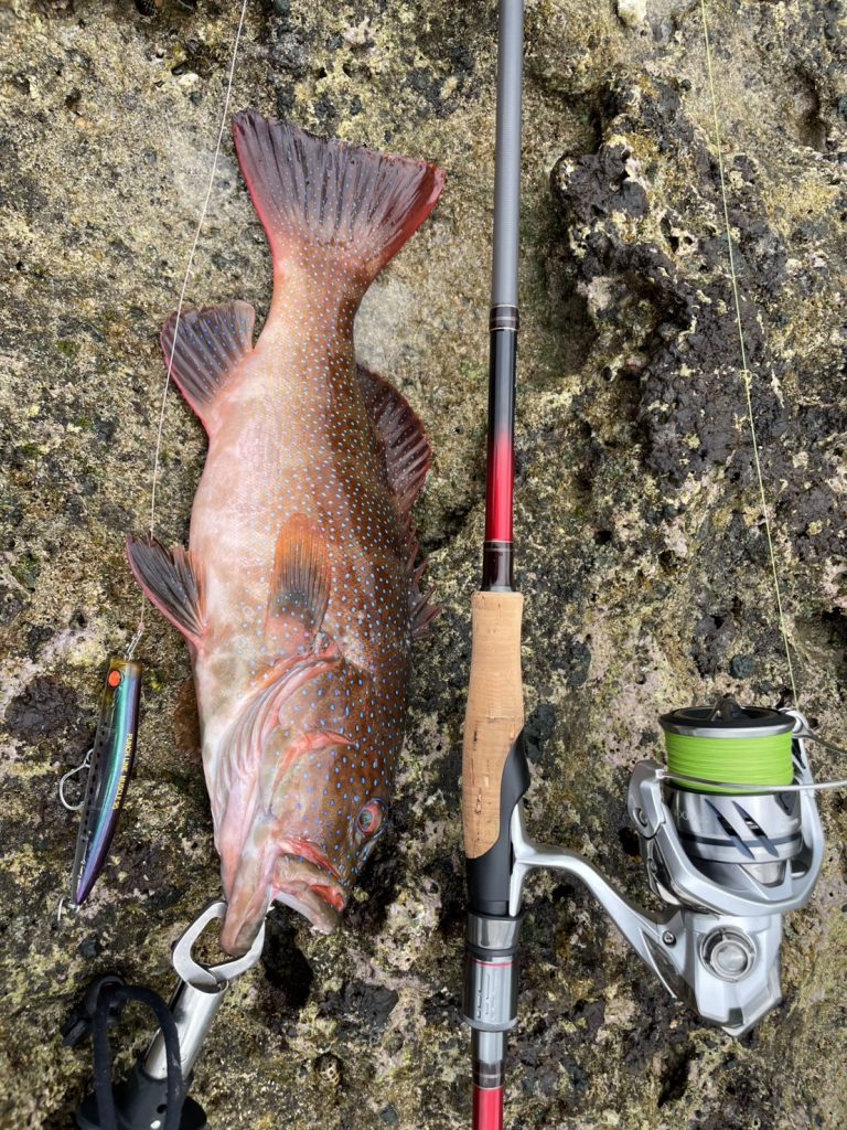 人生初アカジン。サイズは40㎝ちょうど。入水して1投目の出来事でした。
