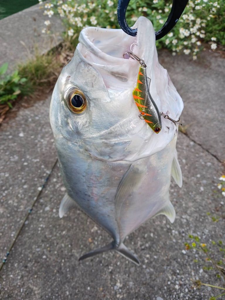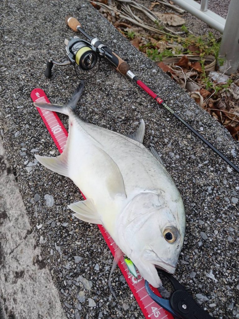 店舗近くの泡瀬海岸で朝マヅメに回遊魚狙いでポイント入りし