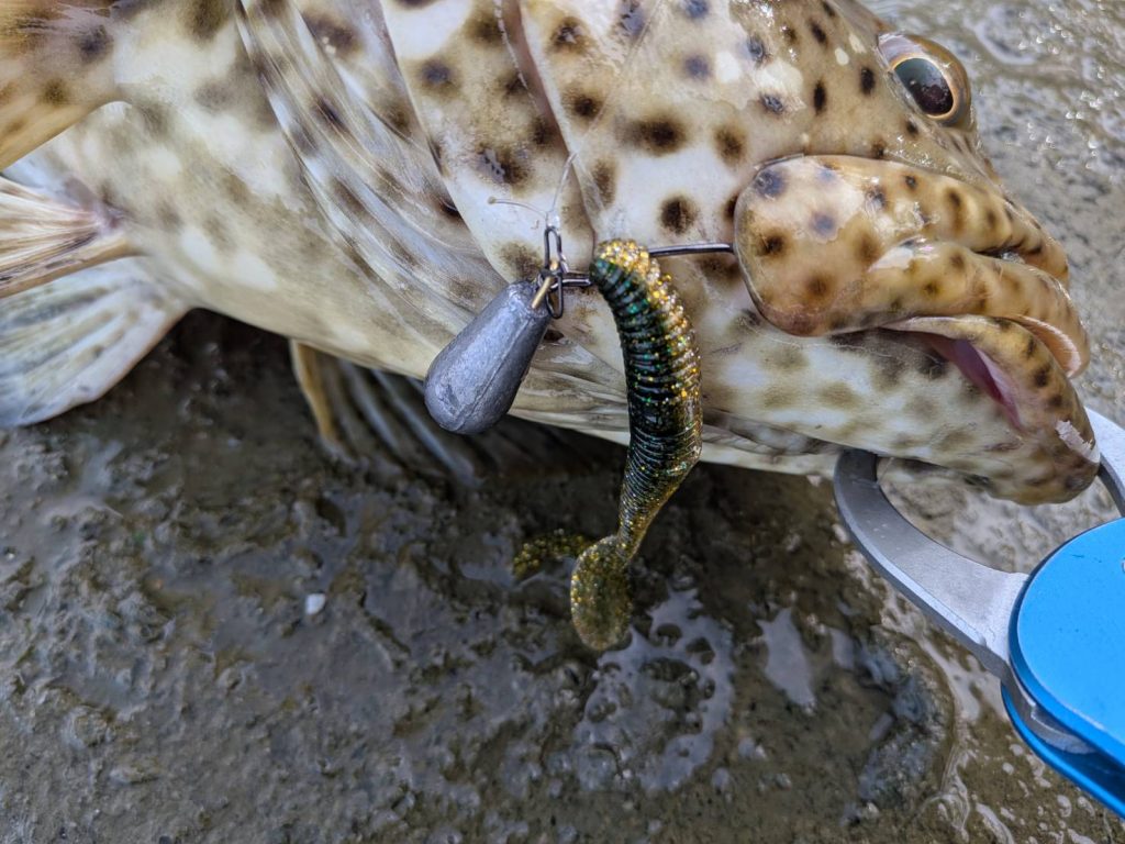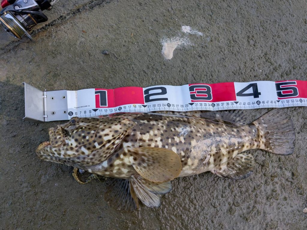 とか思ってたら上げてビックリ..まさかの50up良型ミーバイ(ヤイトハタ)!!