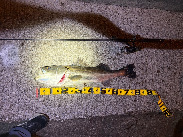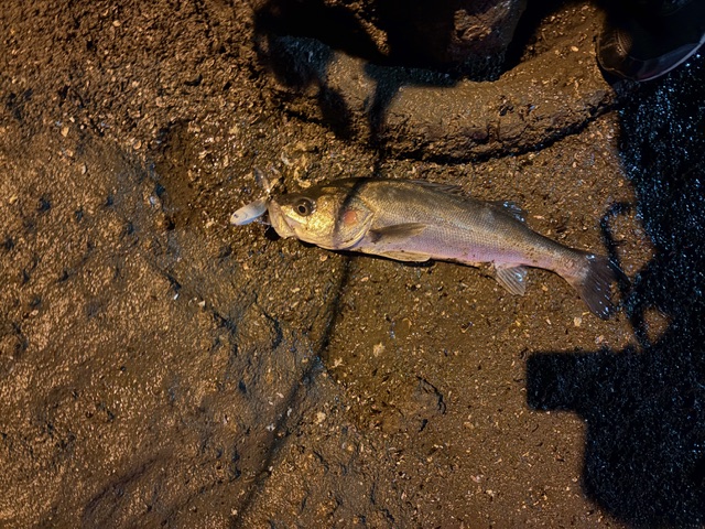 釣り場に入るとベイトの気配はぽつぽつあるようでした。しばらく色々ルアーを変えながら釣っていくと22時くらいの潮止まりに近づいたタイミングで少し流れが変わりました。