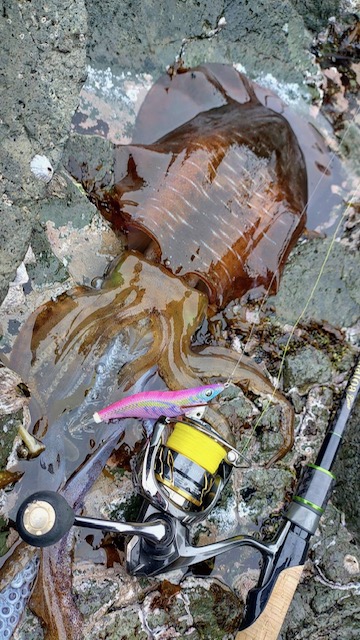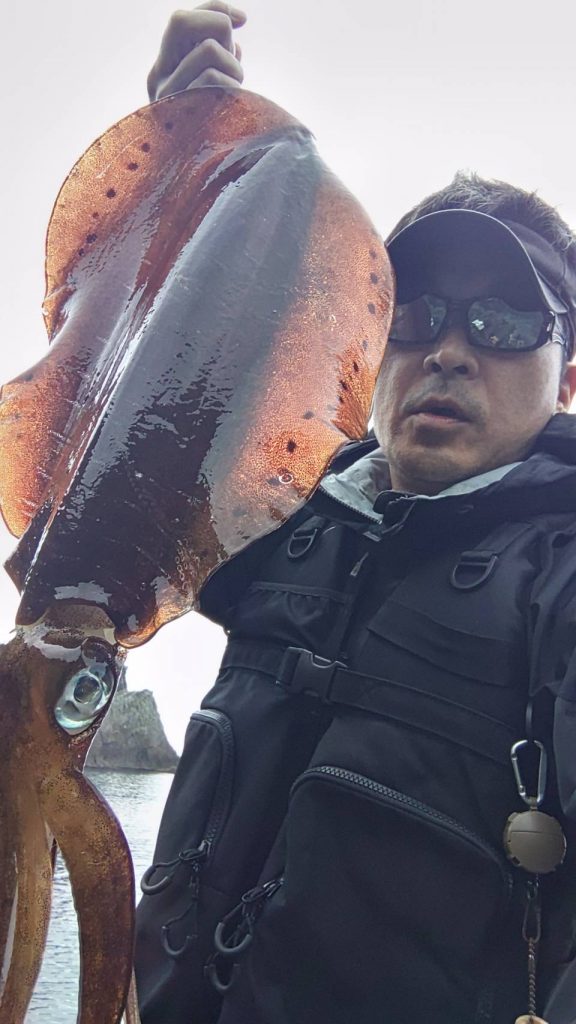 お客様は、朝一は青物狙いのロックショアでイナダを釣り、その後エギングに切り替えて2.3キロをゲットしたそうです。