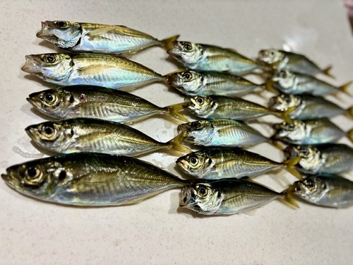 3時間ほどの釣行で、目の前でのバラシもたくさんありましたが😢最終的に5匹のアジを釣る事ができました😊