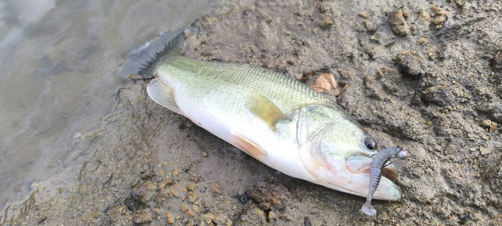今日はシャッド系ワームに反応が良く、私は一誠/キャラメルシャッド2.6(当店在庫有り、残り僅か)