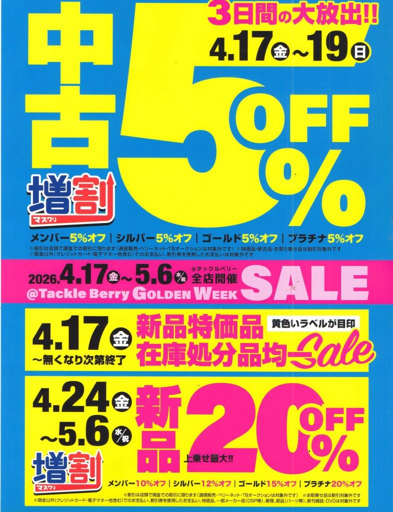 GWセール2日目!中古5%offキャンペーン継続中♪