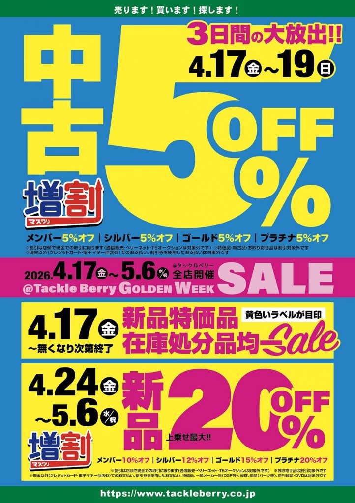2026ゴールデンウィークセール、 絶賛開催中ですが、本日より新品商品最大20%OFFセールが始まります!!!