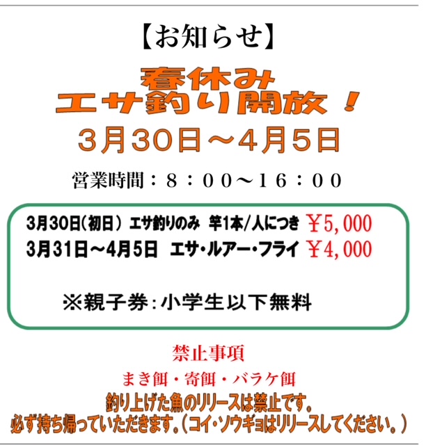 そうそう、ただいま大芦さんでは餌釣りを解禁中らしいです!