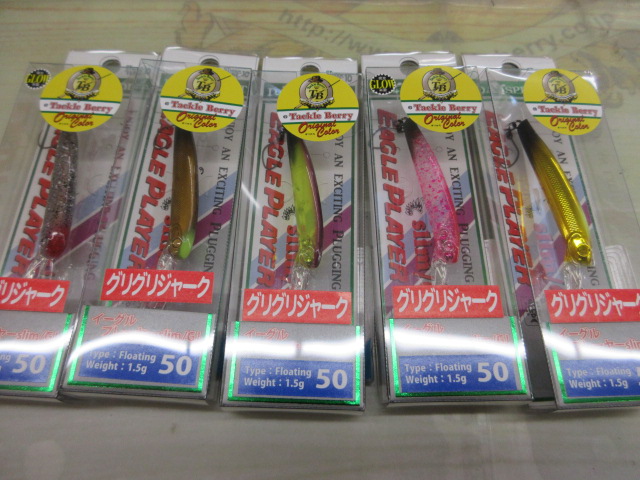 縦に潜り、浮上で喰わせるグリグリジャークでお馴染みの50Slim/GJから、タックルベリーのオリカラが発売です。全5色、お求めの方はお早目にどうぞ。