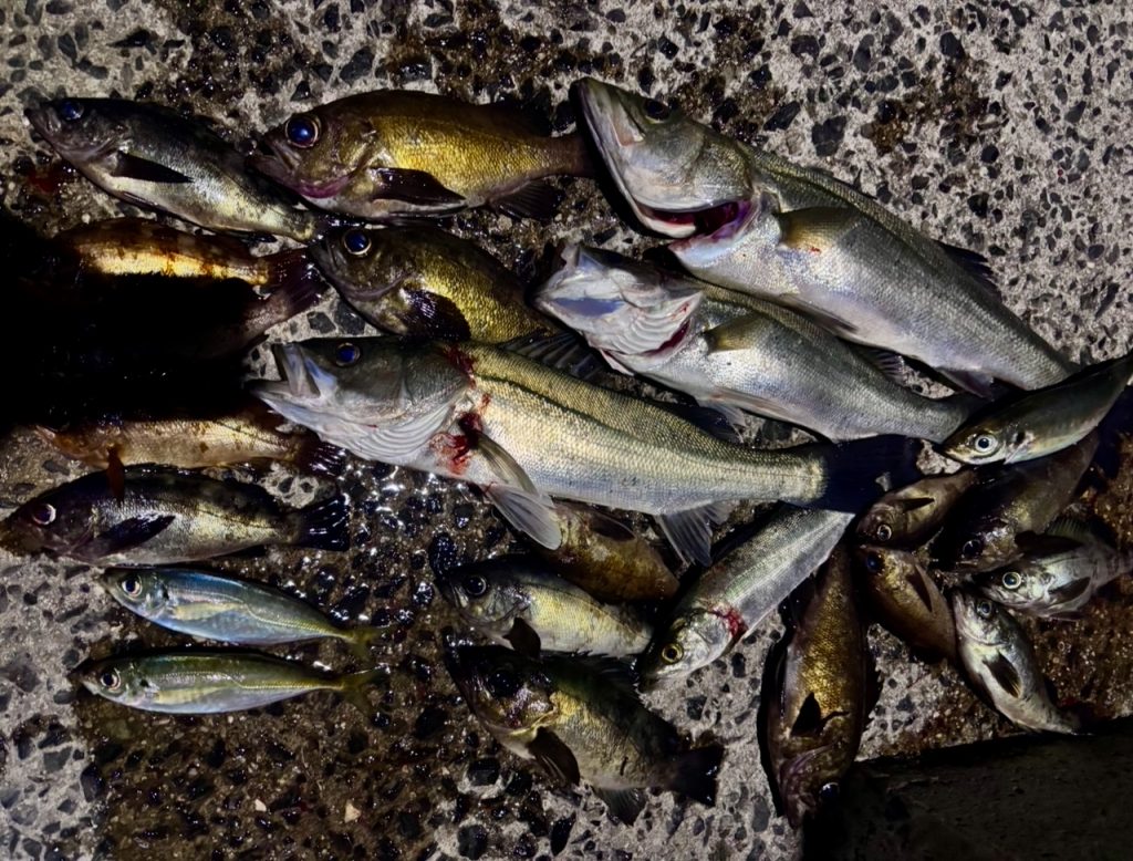 シーバス数匹と、メバルとアジ3匹だけ釣れました。