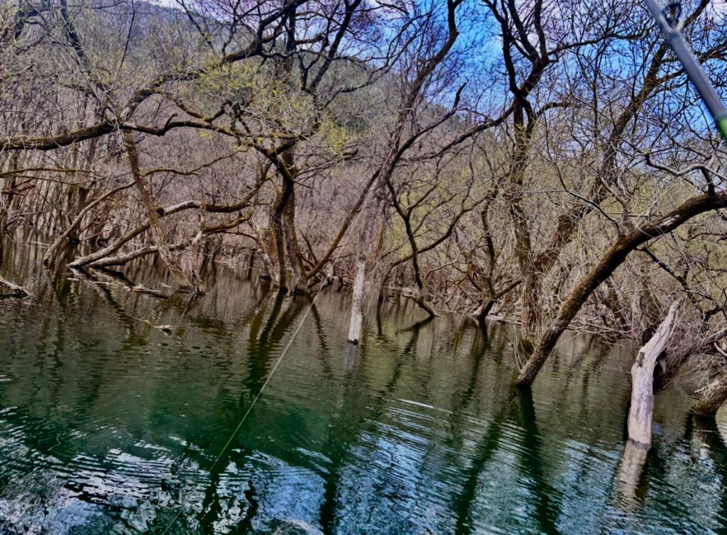 増水して木が水没してひたすら釣れそうな景色が広がっています。