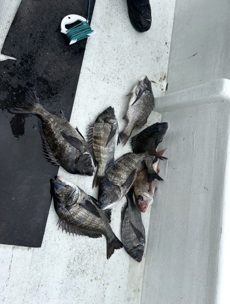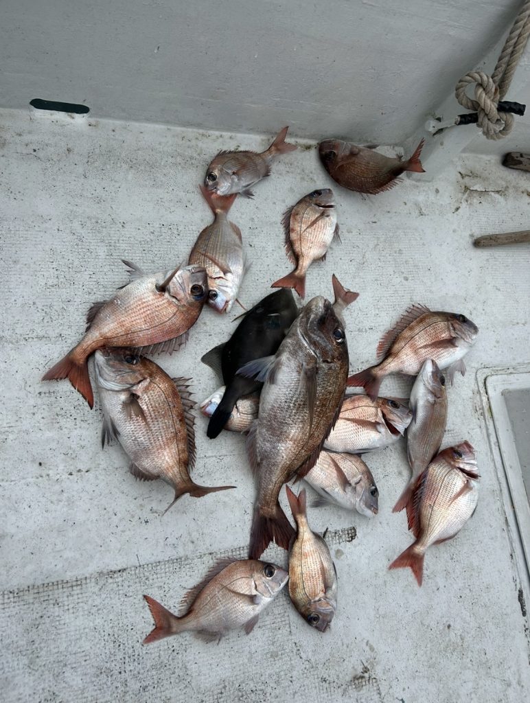 納竿前になんとかお持ち帰りサイズの30㎝と40㎝のマダイをキープすることが出来て一安心です。