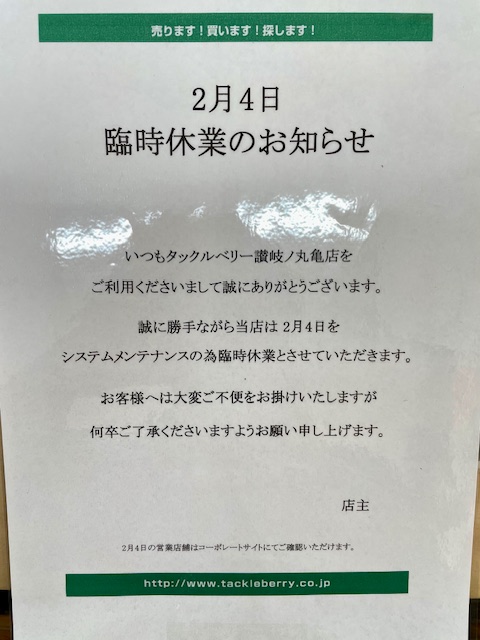 ※明日2/4は臨時休業となりますm(_ _)m
