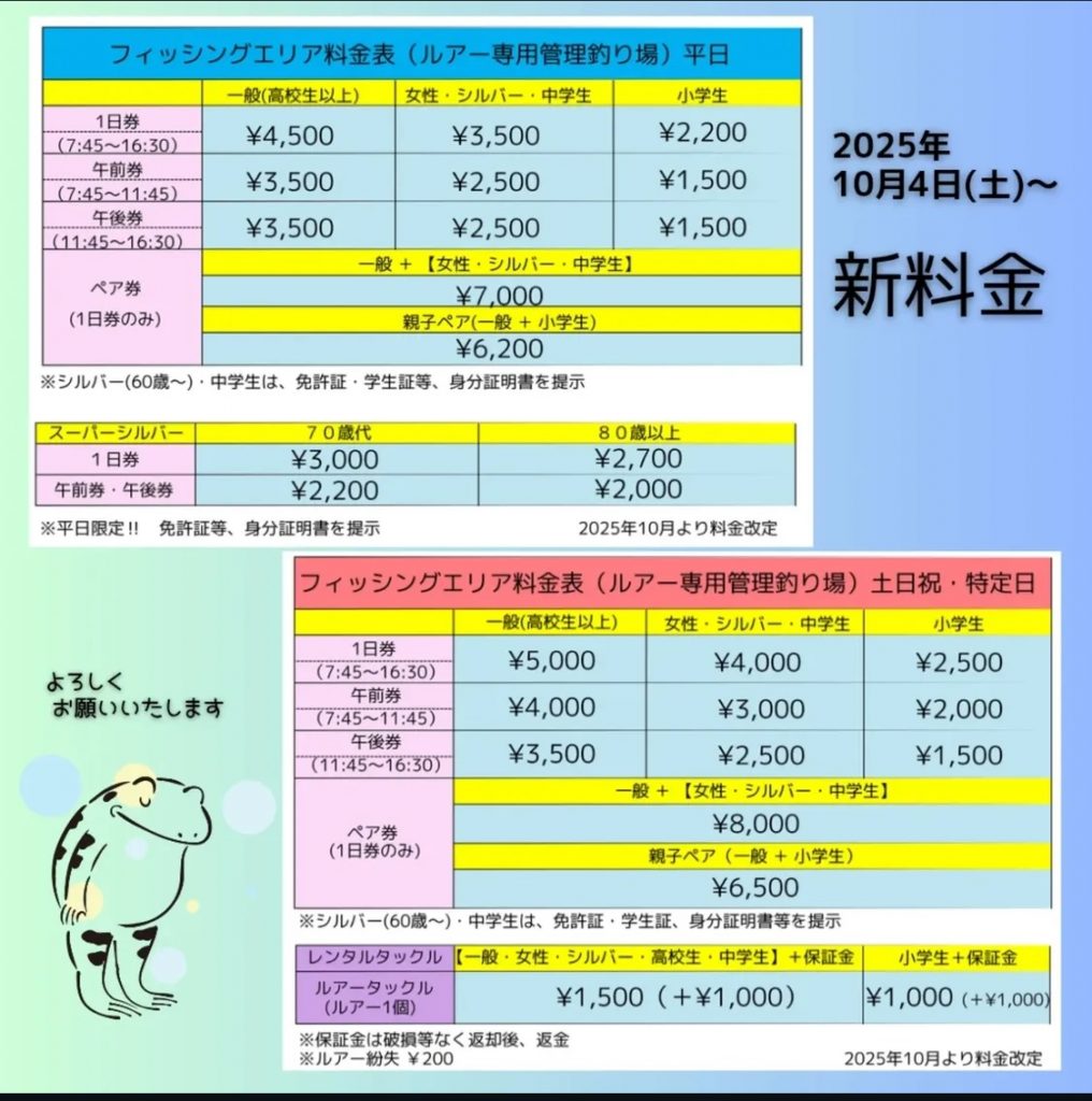 新料金に変更されたので釣りに行かれる方は確認しておきましょう!