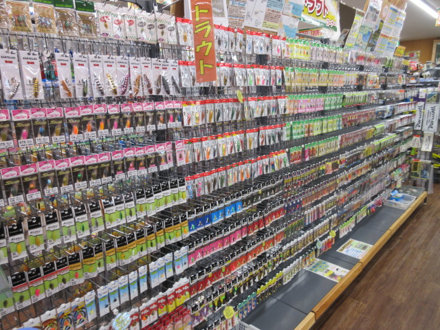 美濃多治見店にはスプーンやプラグなどのトラウトルアーが新品中古共に沢山おいております!