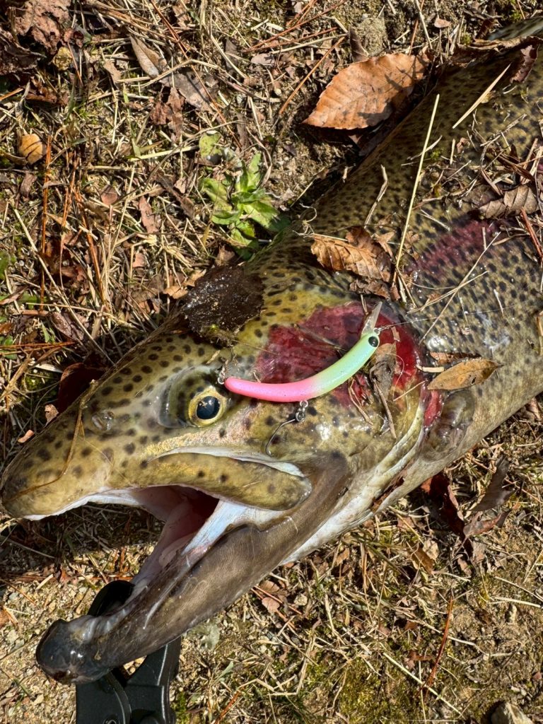 使用ルアー:トラウトポンドノイケ さかさニョロスリム60FS 他